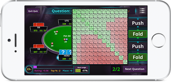 Answer quizzes and get instant feedback from the Coach to help develop your perfect preflop game.